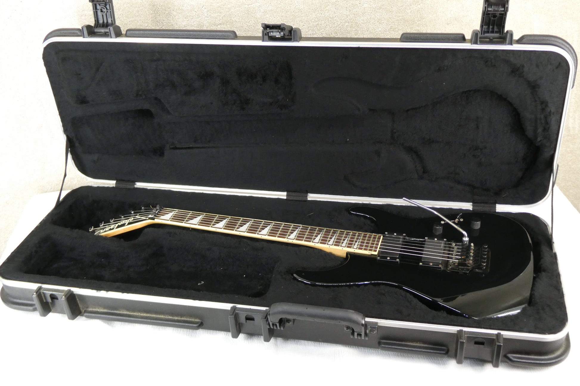 Jackson Dinky Black w/HSC Can you say Hair Metal ? This guitar is what you need and more !!! As best I can tell this is not a USA made guitar !